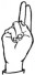 На ћирилици написано МАРИЈА БЕЛЕНЗАДА састоји се из 15 слова [?]. Исписано ћириличном једноручном азбуком за глувонеме: